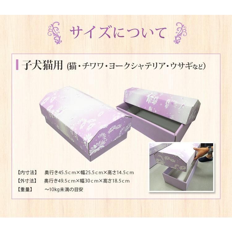 この棺は家族同様でもあるペットの最期のお見送りを段ボール箱ではなく専用の棺でできないかと企画した簡易型棺です。